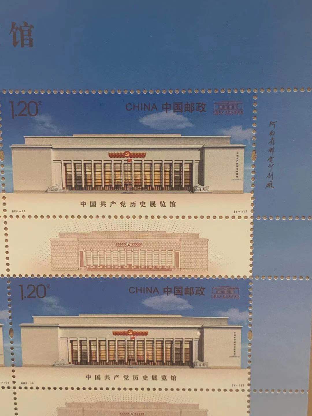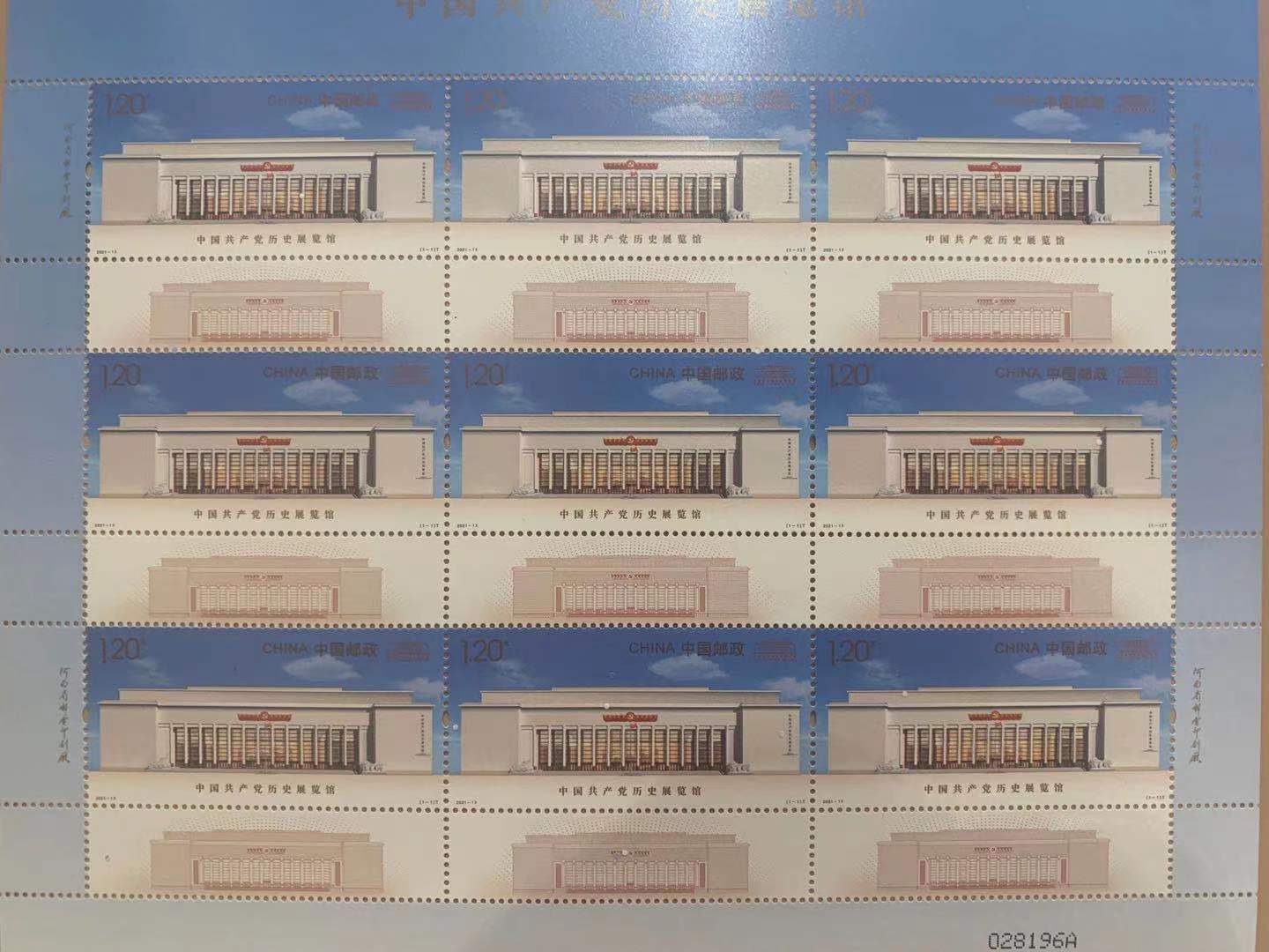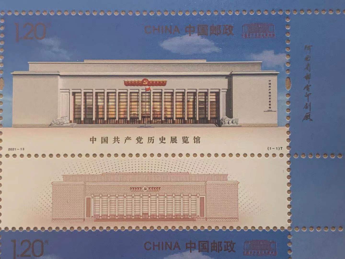 6月20日,中国邮政发行《中国共产党历史展览馆》特种邮票1套1枚,邮票面值为1.20元。计划发行数量为820万套。