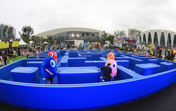 值得一提的是,终点处占地200平米的游艺项目中,大型实景吃豆人迷宫挑战赛空降趣跑现场,它真实还原游戏场景,百分百复刻游戏情节。另外投篮机挑战赛、彩衣巡游、街舞快闪等互动环节及型酷挑战赛,让体验者在跑、追、躲、闪,使出浑身解数。