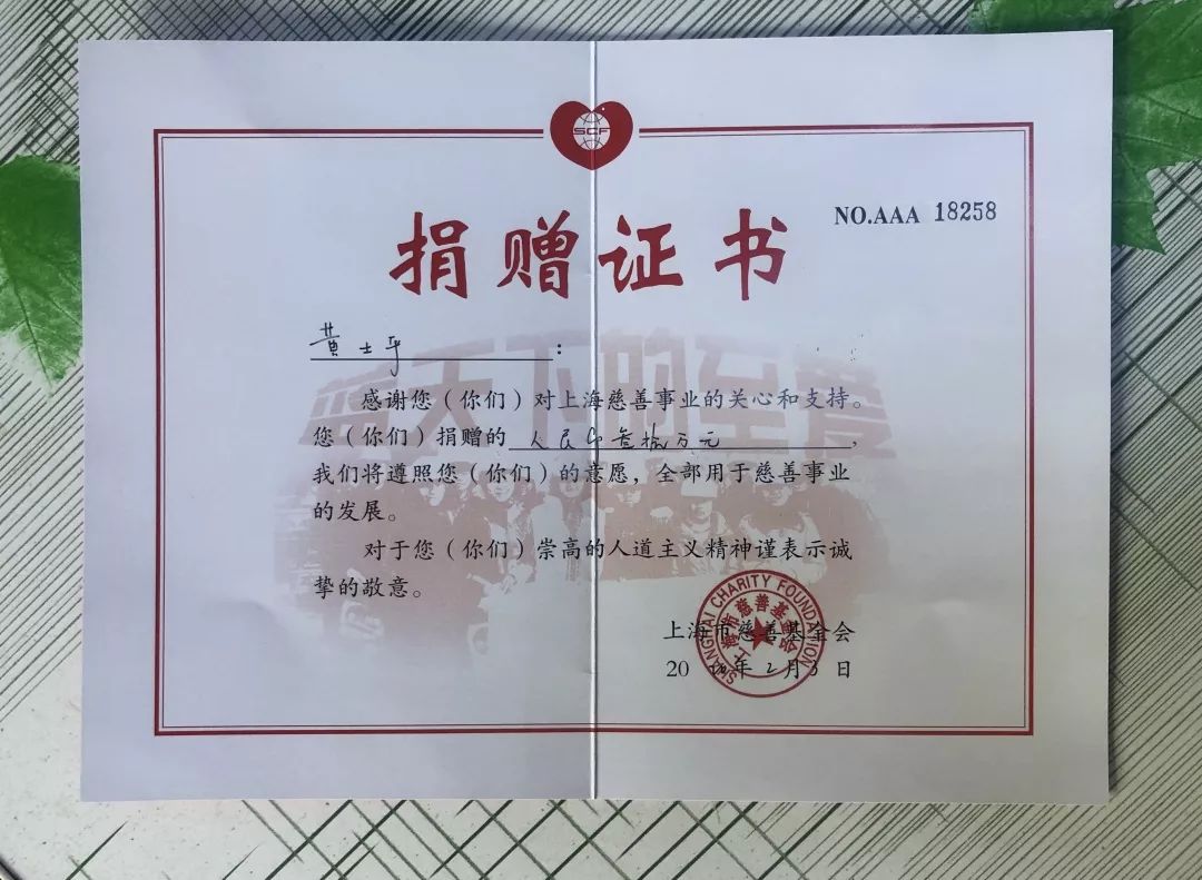 今年4月,60岁的黄士平在接种疫苗时,被旁人一眼认出。“上海‘爷叔’真是大气,一个人为抗疫捐款50万元!”面对周围人的夸赞,黄士平憨憨一笑,连忙摆了摆手:“没法去前线,只能在后方支持。与医护人员相比,我做的还远远不够。”