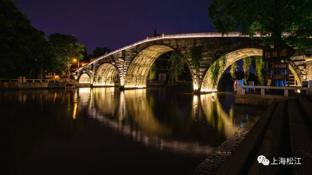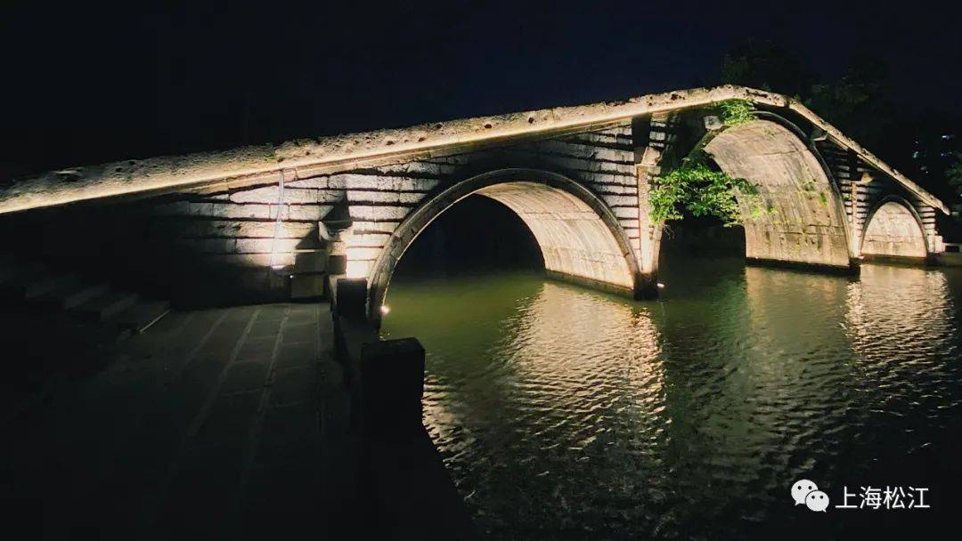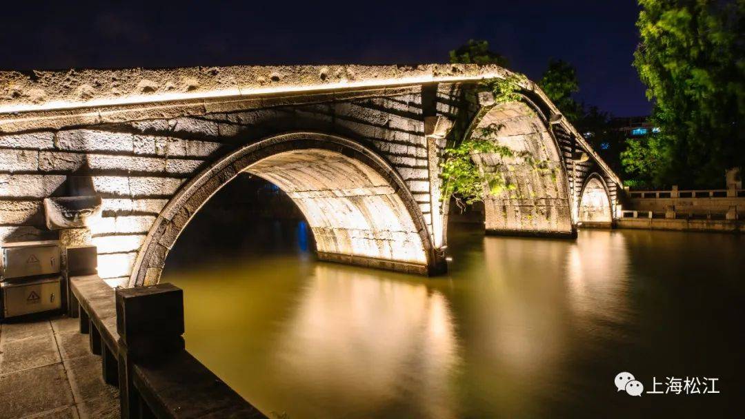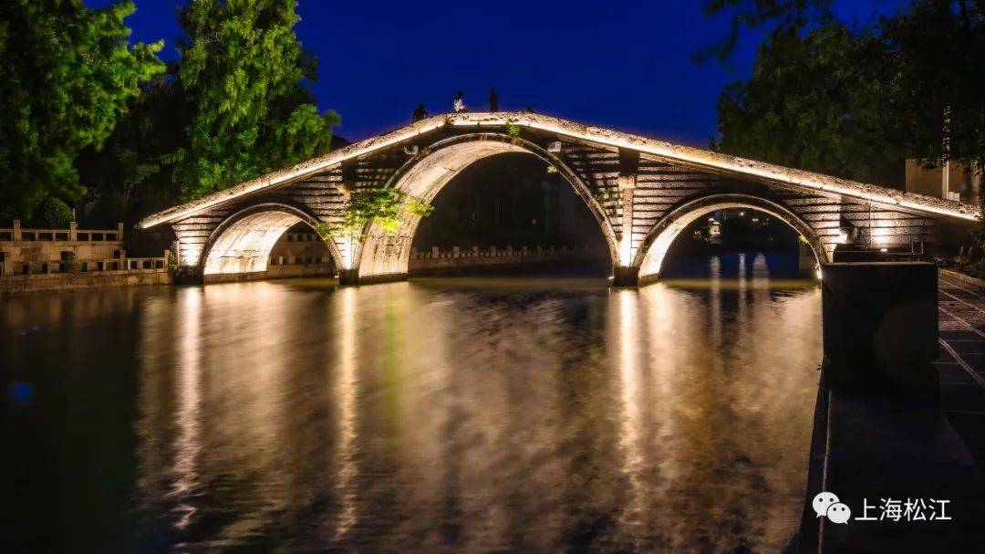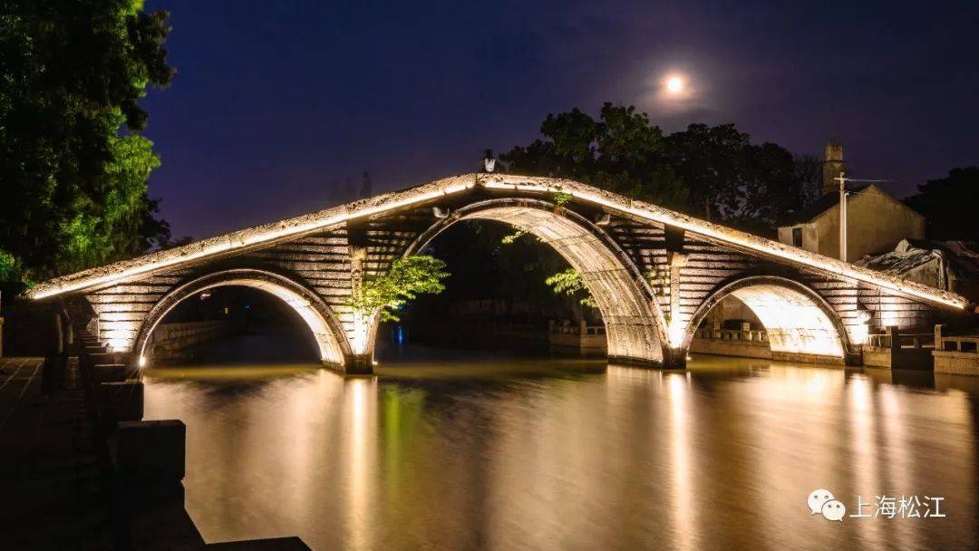 跨塘桥,乘月夜。昨天(6月24日)19时,始建于宋代、位于上海松江仓城历史文化风貌区的“云间第一桥”——跨塘桥亮起景观灯。