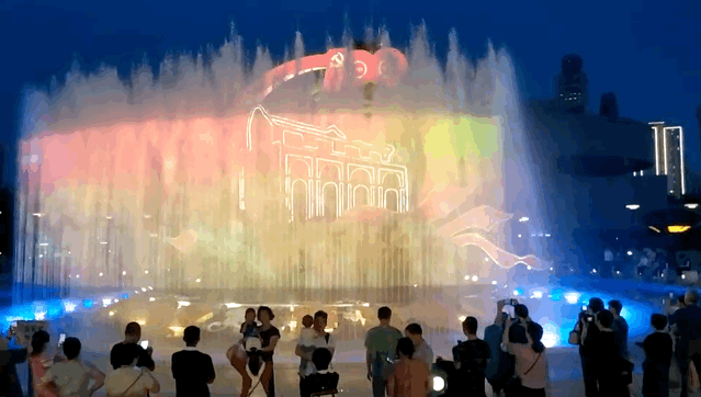 在音乐、水幕和灯光的映衬下,伴随着“唱支山歌给党听”“茉莉花”等耳熟能详的歌声,精彩呈现出中共一大会址影像图案等景观;美轮美奂的水柱、绚丽璀璨的光影交相辉映,犹如夜幕下的一场视觉盛宴,流光溢彩的美景吸引不少市民游客纷纷前来先睹为快,并用手机定格这一夜幕下的精彩瞬间。