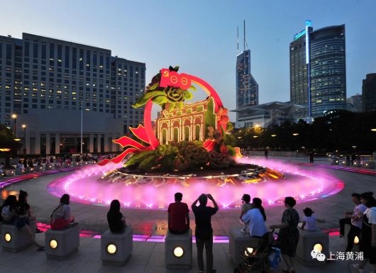 图说黄浦 | 人民广场立体大花坛亮灯,夜景上演视觉盛宴