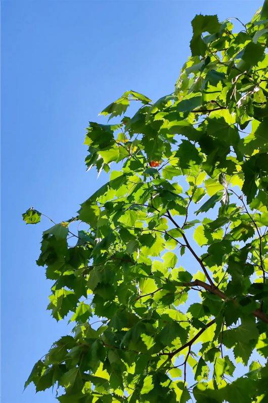 六月的天气,清冽中带着丝丝湿润,草木葳蕤,枝叶繁盛,换个角度仰望天空,说不定会有意外收获~