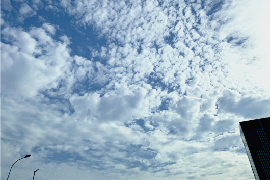 似乎是难得见到这样的好天气,云也显得调皮起来,一朵朵、一片片、一丝丝、一缕缕……让人忍不住想抬头多看几眼,然而转瞬,它们却又变了模样……