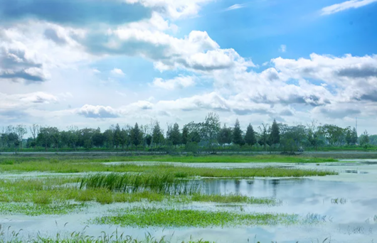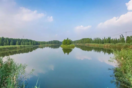 在练塘镇,有一处人少清幽之地——九洲涵养林。这片涵养林位于太浦河畔,占地约2万亩。里面有河塘、树林、12公里徒步道,是一片原生态森林氧吧。