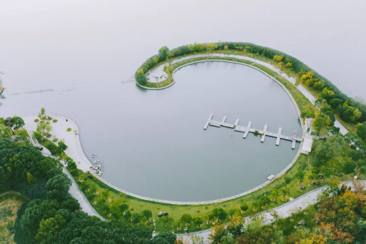 围绕大莲湖的湿地景观,完全依仗天然风景修建,满足都市人回归田园水乡、追寻江南记忆的梦想。五颜六色的花海,宽广的湖面、河流,四周杉林环抱……
