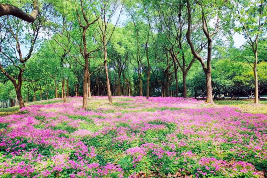 园内水木清华、风光旖旎,坐拥17万平方米、四季常青的草坪,有11万棵大树、500余种花卉树木。漫步其中,就好像走进了一个绿色大森林。露营、烧烤以及花船等水上活动,丰富多彩。