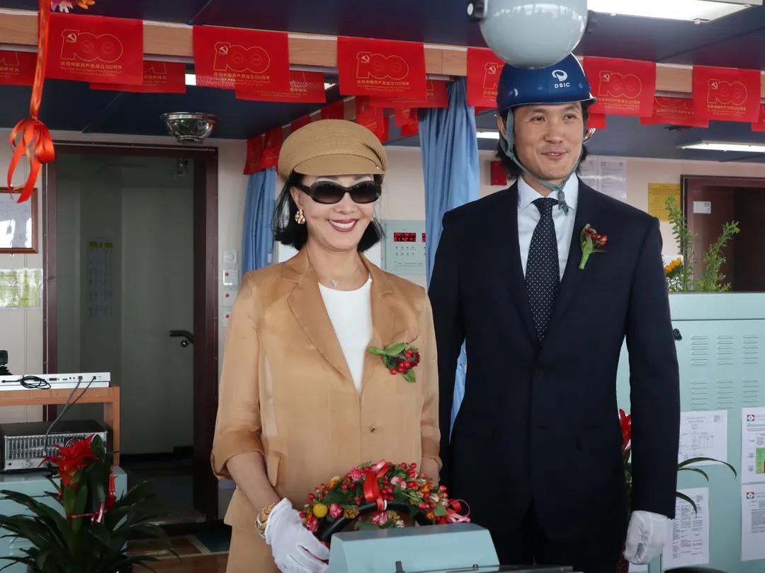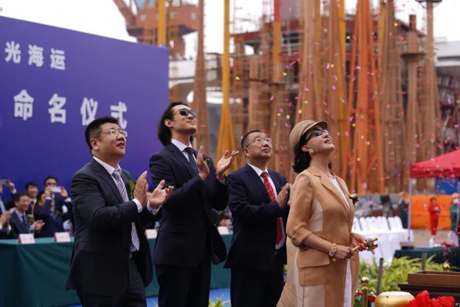 命名仪式上,由教母赵何琍琍女士为新船命名、砍缆,赵式庆先生、蔡洙一先生、邓昌连先生共同见证。其后赵式庆先生陪同赵何琍琍女士以及一众领导登船参观。