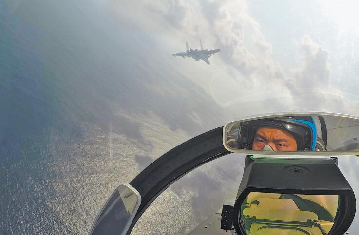 海军舰载航空兵某飞行大队飞行员正在进行编队飞行训练。 孟祥盛摄
