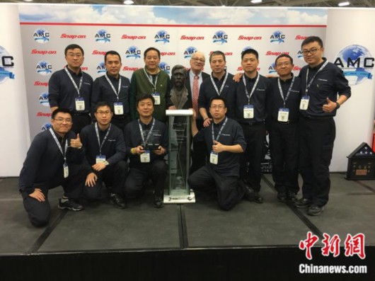 2016美国达拉斯国际飞机维修技能大赛颁奖。后排右一为李辉。受访者供图