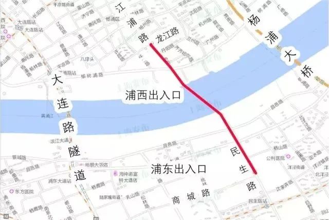 江浦路越江隧道新建工程北起杨浦区江浦路、龙江路路口,向南下穿福宁路、杨树浦路、黄浦江、滨江路、昌邑路、浦东大道、栖山路后出地面,至浦东新区民生路、商城路路口止,工程全长约2.28公里。该工程此前已实现结构贯通,正在进行机电安装等附属项目施工中,为开通创造条件。