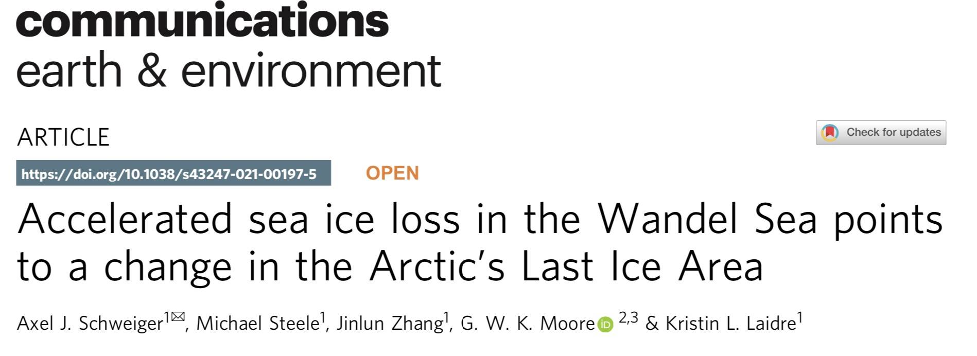 最新的一项研究则显示,“最后的冰区”对气候变暖的适应力比以前认为的要低。华盛顿大学海冰科学家Axel Schweiger及其同时在《通讯-地球与环境》(communications earth & environment)发表的一篇论文称,2020年夏季,反常的夏季风和冰层变薄造成了北极“最后的冰区”海冰大量消失,这一地区是北极熊、海象和海豹的重要避难所。