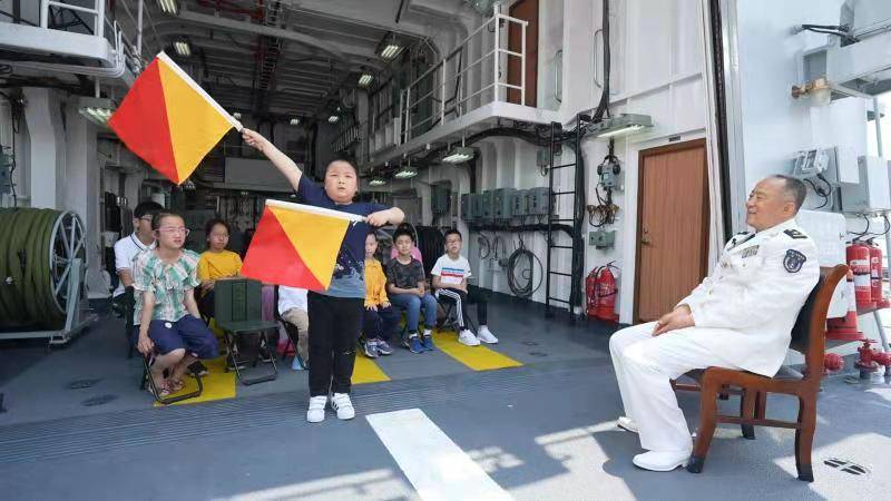 在韩德彩将军家中,聆听韩将军从放牛娃变身王牌飞行员的传奇经历,学唱“放牛娃当兵去”的自编儿歌;登上海军“嘉兴舰”,跟张华臣将军学旗语、了解海军发展历程;走进“南海守礁第一人”龚允冲将军的“微型海洋馆”,参观了解各类奇珍异宝背后的故事;在干休所荣誉室内,参加身经多场战役的李明东将军组织的特殊少先队入队仪式……“12期节目,每一期都有惊喜,都有打动人心的场景和故事。”东方卫视《潮童天下》制片人沈腾飞介绍,本次特别节目是地方电视台卫视频道首度尝试将少儿精品栏目与国防启蒙教育结合,拍摄过程通过还原历史背景、设置模拟情境、现场分享心得、教唱红歌军谣等方式,让“老少”组合加深互动交流、启迪情感共鸣,后续将把该档节目通过融媒体全网推送,让它不仅是孩子们的国防教育,更是全体社会公众们的国防教育。