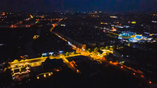 沿玉树路一路向南,经过仓城历史文化风貌区,静静流淌的市河金光荡漾,两岸建筑如同明珠镶嵌其中,夜晚的三桥一阁——大仓桥、市河桥、跨塘桥、迎宾阁正展现别样的水幕光景,流连桥间,灵性十足。