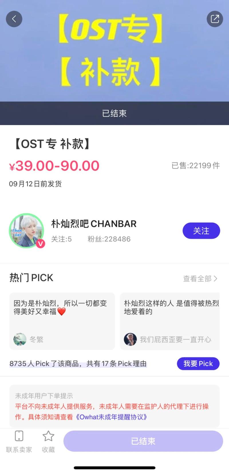 在粉丝交易平台o!what上,记者看到“朴灿烈吧CHANBAR”的店铺有数百件商品,销量最高的超过150万件。在最新的商品中,“OST专 补款”销量较高,超过2万件,某杂志五月刊销量也达1.74万件,“补邮 抽抽乐”销量超过3.6万件。由此预估,在此事件中,涉及粉丝数量要达到数万人。而根据粉丝反映的情况,其中有不少还是未成年人