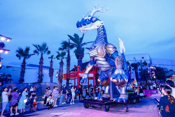 之后的夜游过程中,游客还能观赏到上海海昌海洋公园全面升级的夜间演艺《山海“鲸”夜光花车巡游》,主打远古深海异兽与机械装置完美融合的呈现效果,新加入的“青龙机甲”和“朱雀机甲”异兽机器人作为“山海鲸”主题的开篇之秀,惊艳亮相。