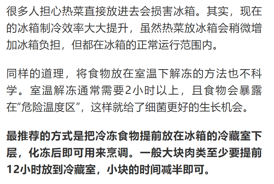 “饭菜要凉透了才能放冰箱,否则会影响冰箱寿命。”持这种观点的人恐怕不在少数。但在营养专家看来,这样做容易导致细菌繁殖,增加食物中毒风险!