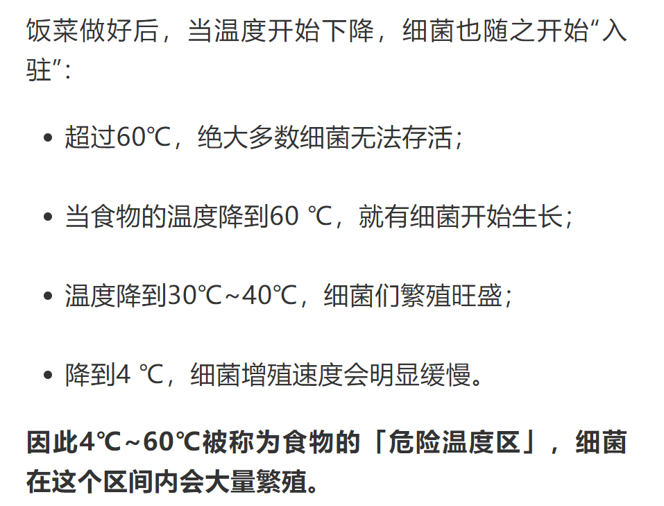 不管如何操作,核心都是“尽量减少食物在4℃~60℃这个温度区间的存放时间”。