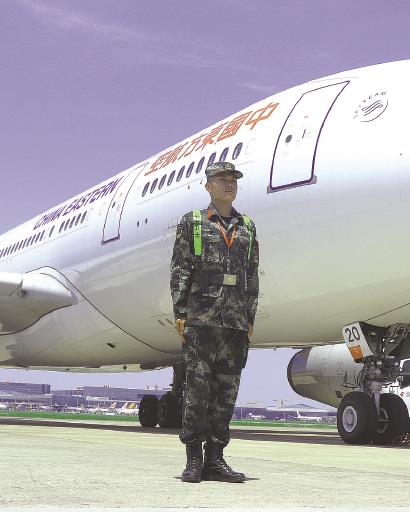 到了夏天,发烫的水泥地面加上飞机发动机的滚滚热浪,走在上面就如同在炭火上行走一般。“停机坪的温度要比市区高出约10℃,地表温度则超过了60℃。夏天在停机坪上哨就像‘蒸桑拿’,一班哨下来衣服都会湿透,最热的时候甚至还能够闻到军靴被烧焦的味道!”哨兵黄秋对记者说。