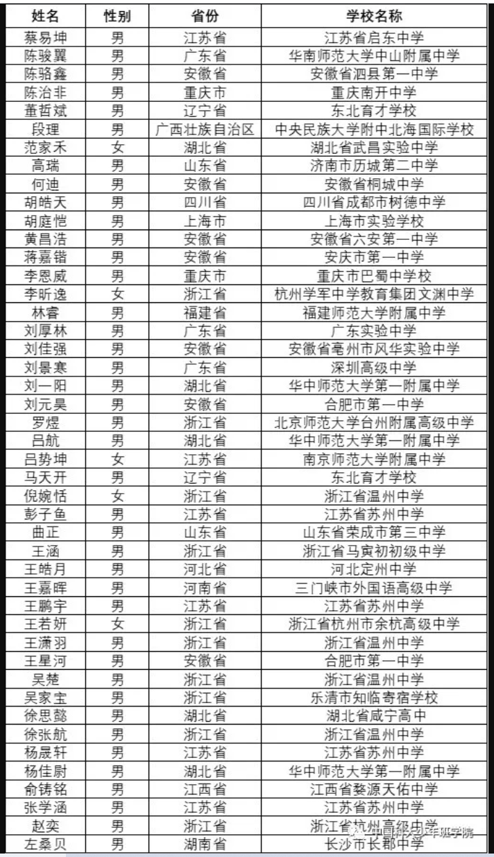 中国科大少年班学院官方微信公众号7月14日公布了《中国科学技术大学2021级少年班录取公示名单》,共有45名学子入围。