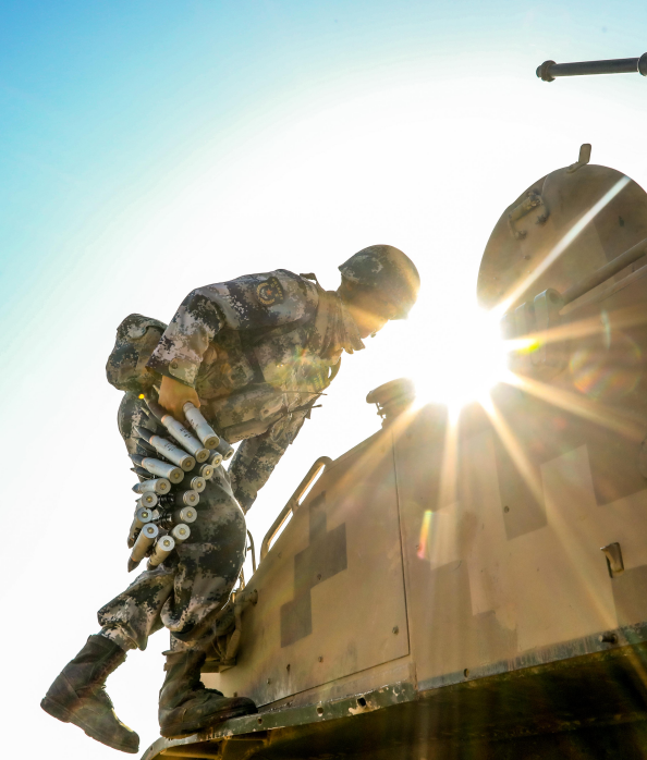 7月中旬,空降兵某旅一场空降机步营全要素实弹演练在贺兰山下打响,他们严格按照空降作战地面战斗流程组织实施,全面检验和锤炼部队多要素协同作战能力。