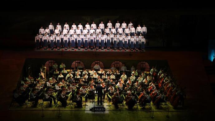 今年是建党百年,也是中国工农红军长征胜利 85 周年。演出汇集了上音声歌系、管弦系、现打系、民乐系、数字媒体艺术学院、作曲指挥系、音乐戏剧系、艺术管理系、研究生部、音乐学系等各学科力量。廖昌永说:“我们希望上音学子一边学习红军的长征精神,一边学习老一辈音乐家们的创作精神,走好属于自己的长征路。”