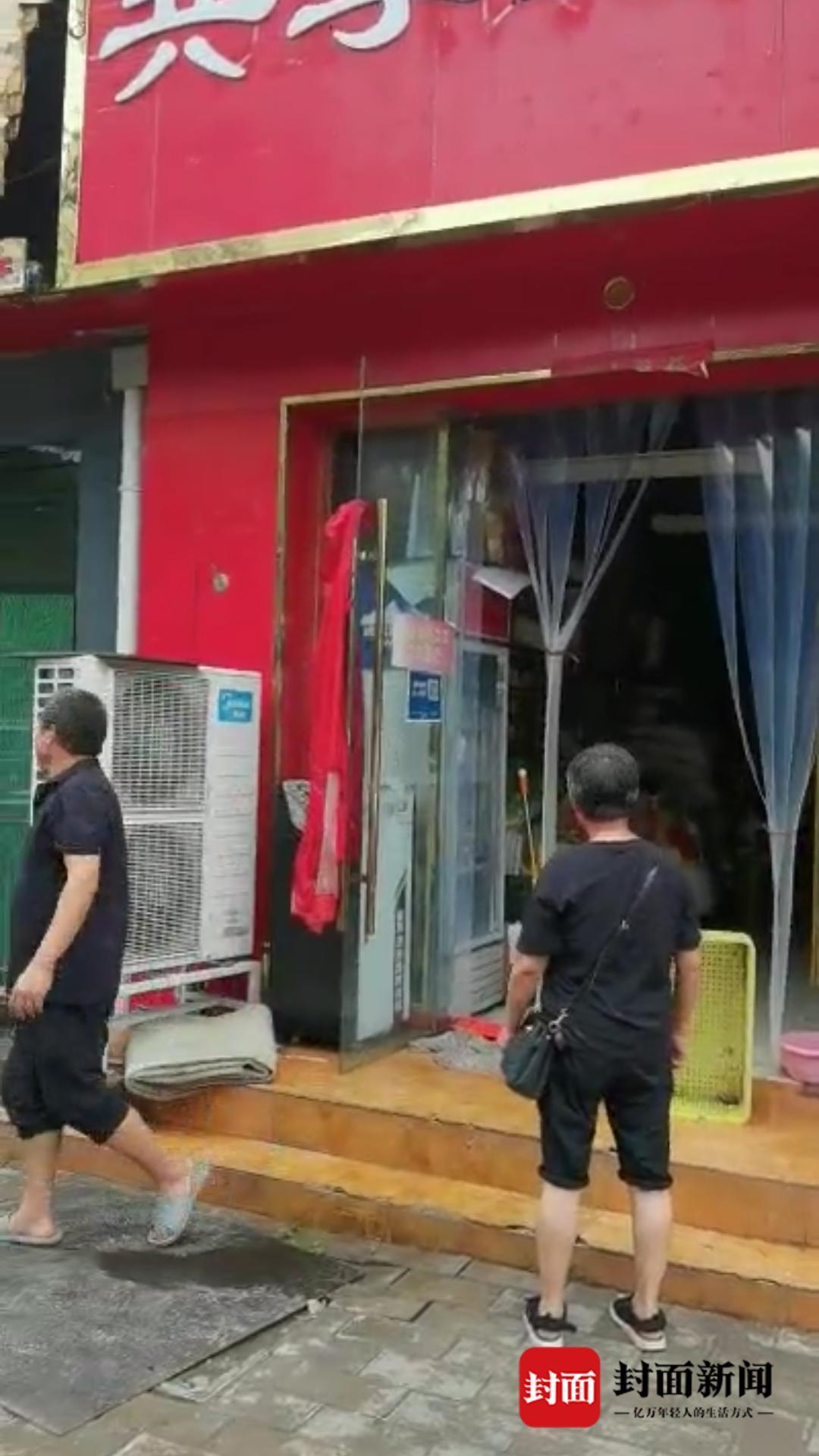 张广兵给封面新闻记者发来几段店铺的视频,视频中,他和另外两名合伙人正在用扫帚清理店内的积水,他还在自己微信朋友圈更新了“动态”:手机从昨晚到现在都没电没信号,刚刚在恢复,给大家报个平安。