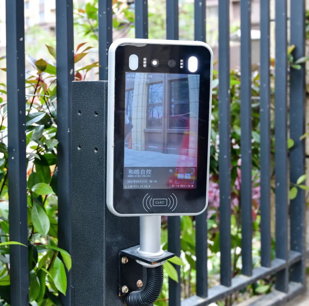 在小区大门口、非机动车库出入口均安装“人脸识别系统”,面对屏幕“刷脸”即可自动开门。