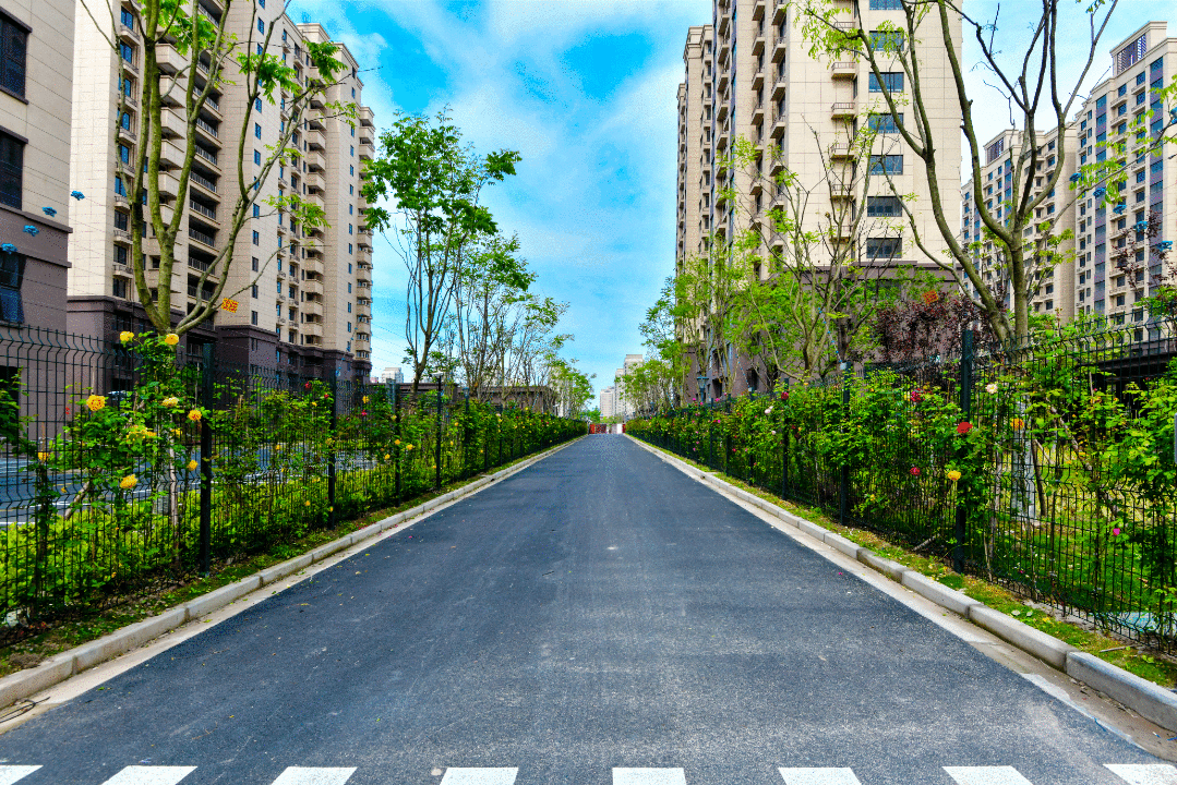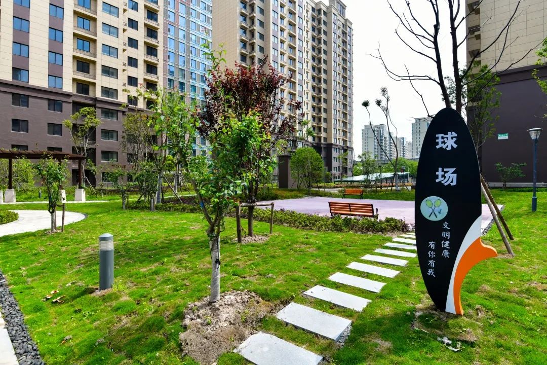 进入小区,首先感受到的就是开阔的空间,路面上各类标识、标线规范划定,小区绿化让社区绿意盎然,儿童活动区、健身点、球场、书报栏、户外休闲活动厅等为社区居民休闲、运动提供了好去处。