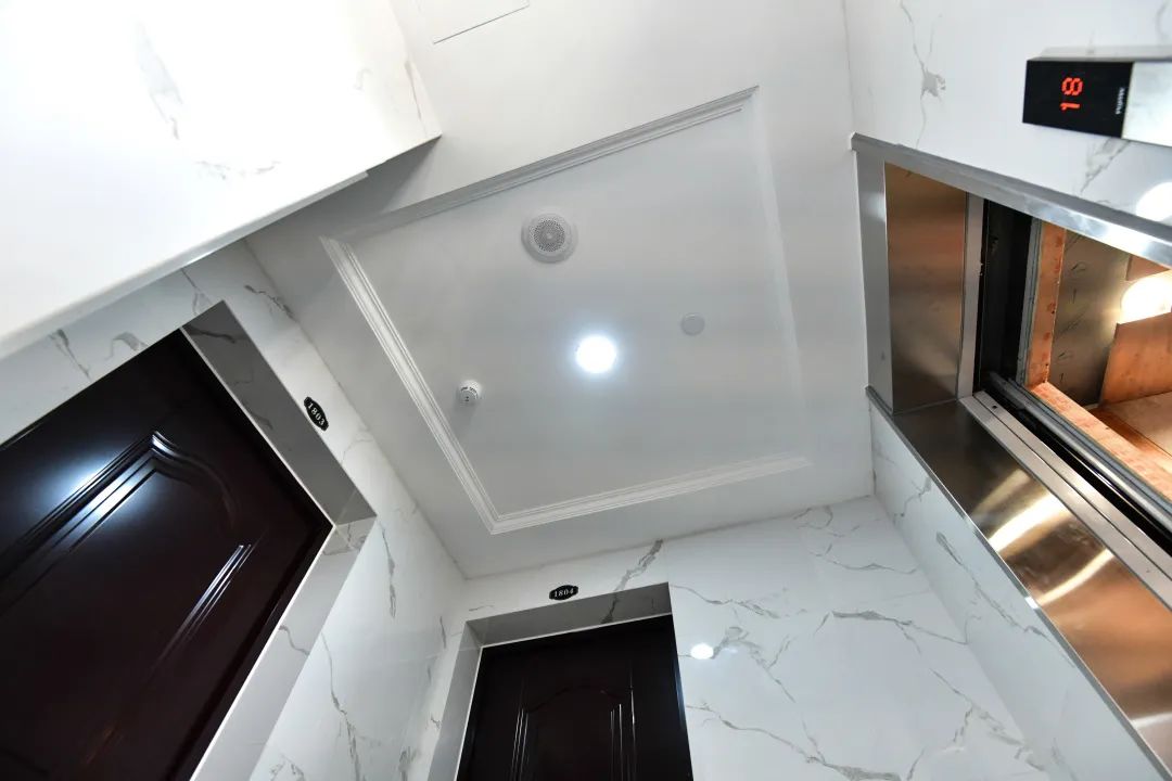 每层楼不仅全部吊顶面砖包墙,同时,防火门、烟雾警报器、喇叭、喷淋器、感应灯等设施一应俱全。