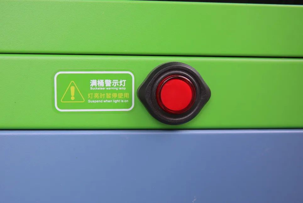 满桶警示灯。设备装有预警警示灯,分别对应各个投口,当某个箱体内部垃圾桶满载,相应警示灯亮起。