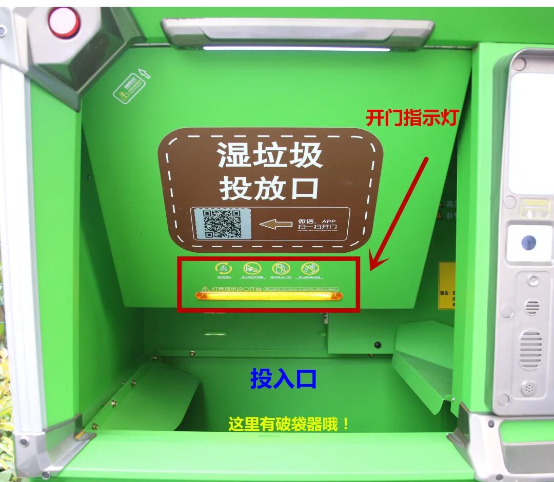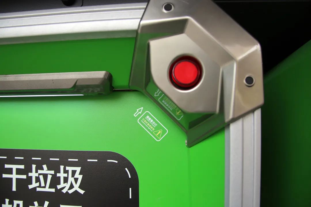 开门指示灯。投口挡板下方设计开门指示灯,随着挡板向内旋转,用户能更清晰地看到垃圾投口,方便投递。