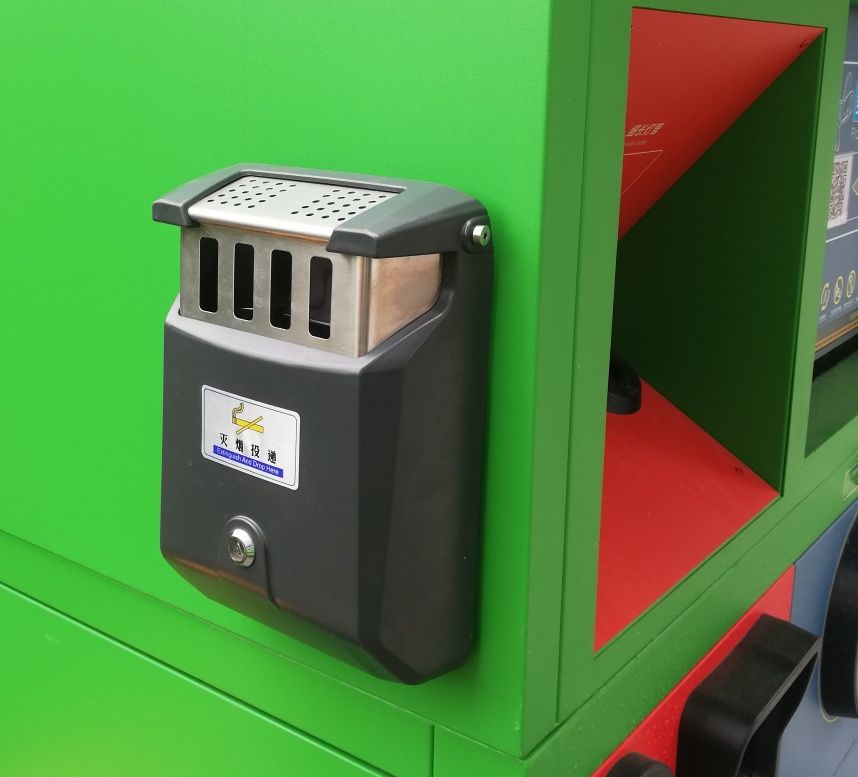 灭烟盒。产品采用外挂式灭烟盒,根据不同场所的需要,可选择性安装,烟灰盒内桶采用优质镀锌板,表面过光油,防止生锈,制作工艺采用模具一次卷压成型工艺,为防止划伤,所有沿口皆做翻边处理,单个容量≥1.0L。