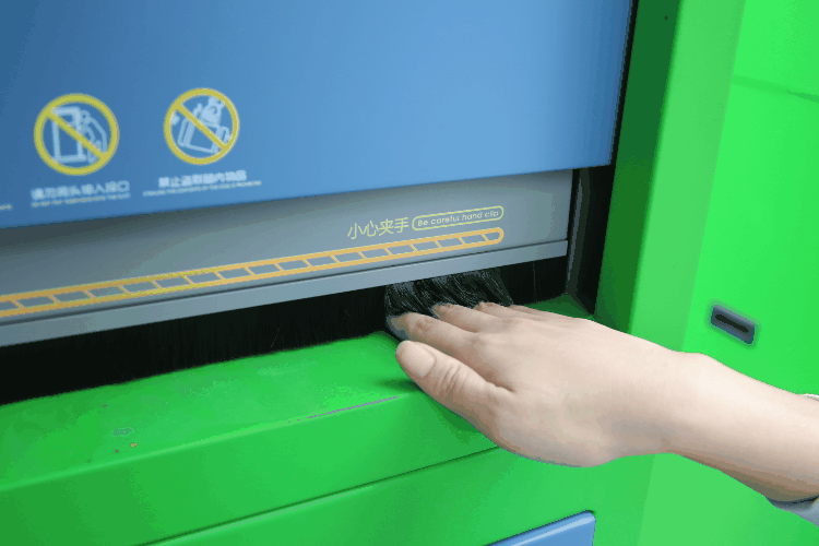 投口防盗、防夹手。投口采用整体封闭式挡板,用户完成身份验证向投口投递垃圾后,投口在几秒后自动关闭,可有效防止有人恶意盗窃桶内垃圾;当用户将手部靠近投口时,投口自动停止关闭,有效避免投口关闭时夹伤手部,安全又便捷。
