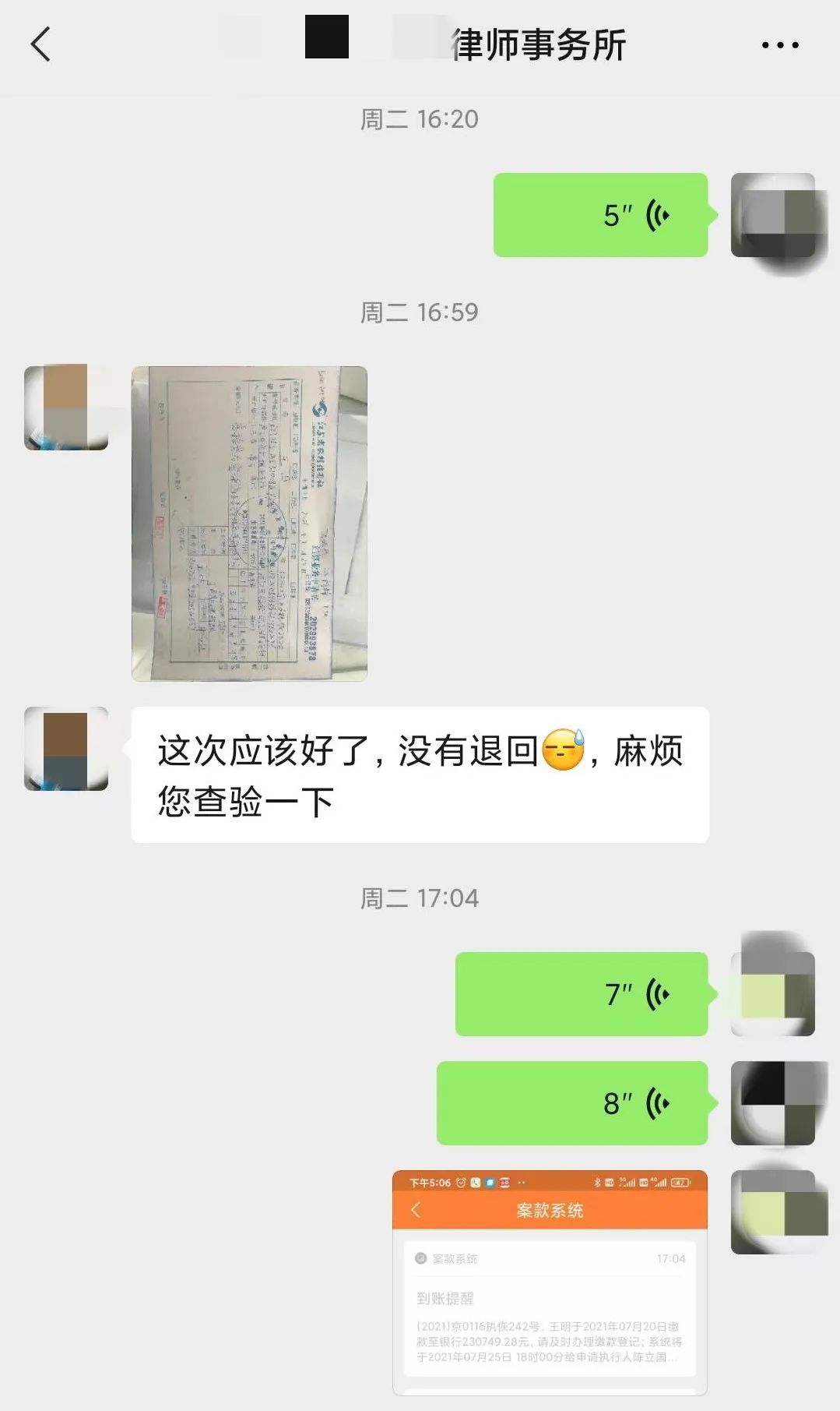 证据摆在眼前,在律师和亲属的劝解下,丁某当日将剩余案款本金主动汇入法院账户,次日将案款利息、诉讼费、执行费汇入法院账户。
