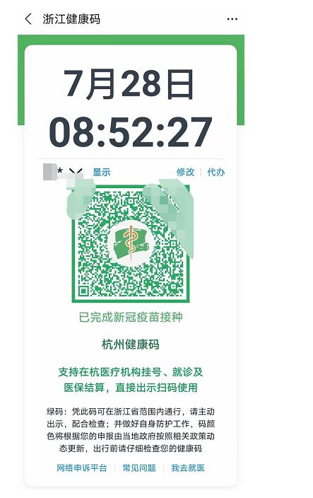 杭州接种新冠疫苗者健康码增设“蛇杖”标志,浙江将推广