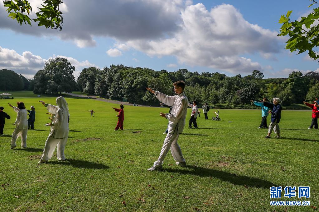 7月28日,人们在比利时布鲁塞尔的拉肯公园练习太极。