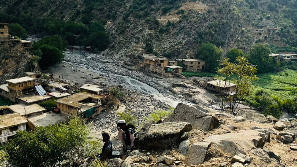 当地时间2021年7月31日,阿富汗东部努里斯坦省,当地暴雨引发洪水,造成人员伤亡。洪水还淹没了大量民房、大片农田和果园并冲毁部分道路。阿富汗官员29日说,暴雨在阿富汗东部努里斯坦省引发洪水,造成至少40人死亡。