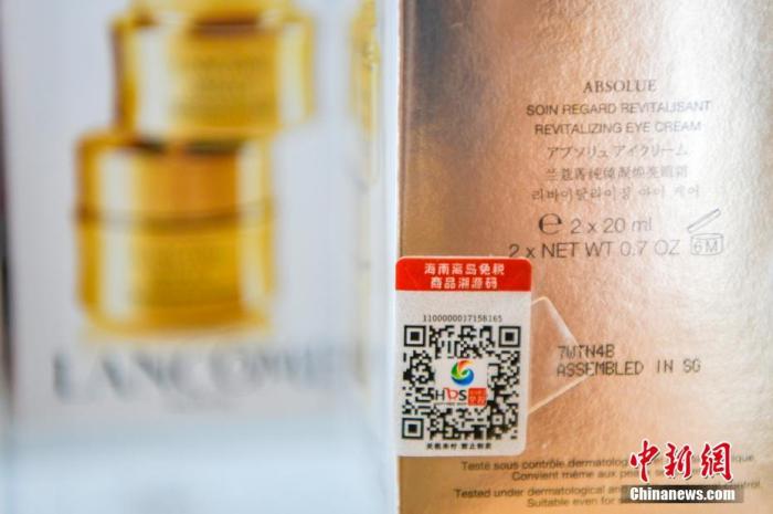 7月31日,海南海口,贴有溯源码的免税商品。《海南自由贸易港免税商品溯源管理暂行办法》8月1日开始实施。据介绍,8月1日起,香化、酒水、手机3类离岛免税商品将加贴溯源码销售;12月底,所有离岛免税商品加贴溯源码。如果岛内居民日用消费的“零关税”政策落地,免税日用消费品也要加贴溯源码后销售。中新社记者 骆云飞 摄
