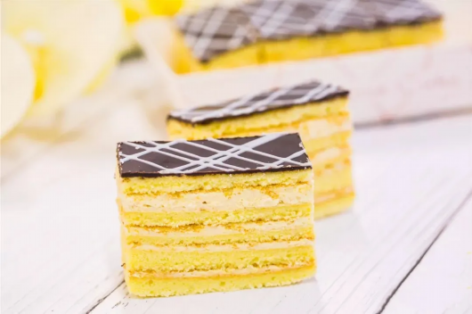 样子像拿破仑的酒醉蛋糕同样很受欢迎,上下层是酥皮和少量的奶油,中间层是软润的蛋糕体,孔隙均匀,咬起来很是松软,吃完之后会有酒的回香,风味独特。