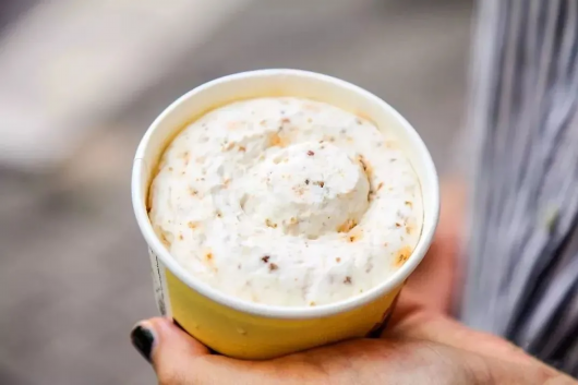 老大昌的冰糕上有一层薄薄的奶油,还有核桃细碎的颗粒,非常香醇。在冰糕的最下面,是一小层蛋糕,吃起来很过瘾。