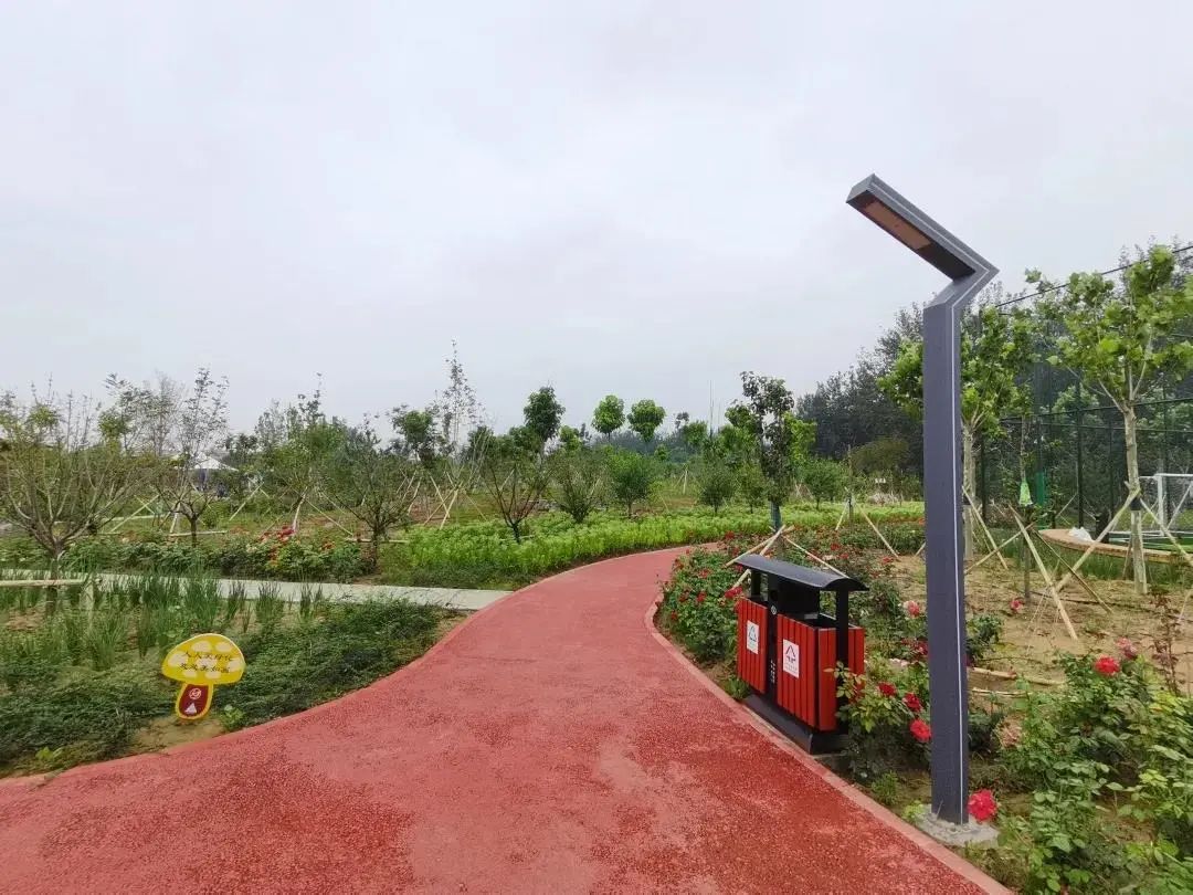顺着蜿蜒曲折的小径一路向前,可解锁青砖座椅、鸟语花香等景色,油松、国槐、山桃等乔木和地被花卉交相辉映,随处可见绿意,处处皆美景。同时,融入地域文化元素,集功能性与艺术性于一体。