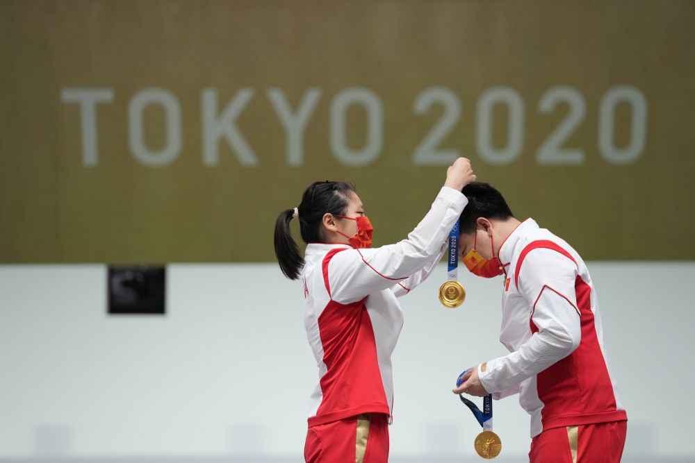 7月24日,杨倩赢得东京奥运会首枚金牌。新华社记者鞠焕宗摄