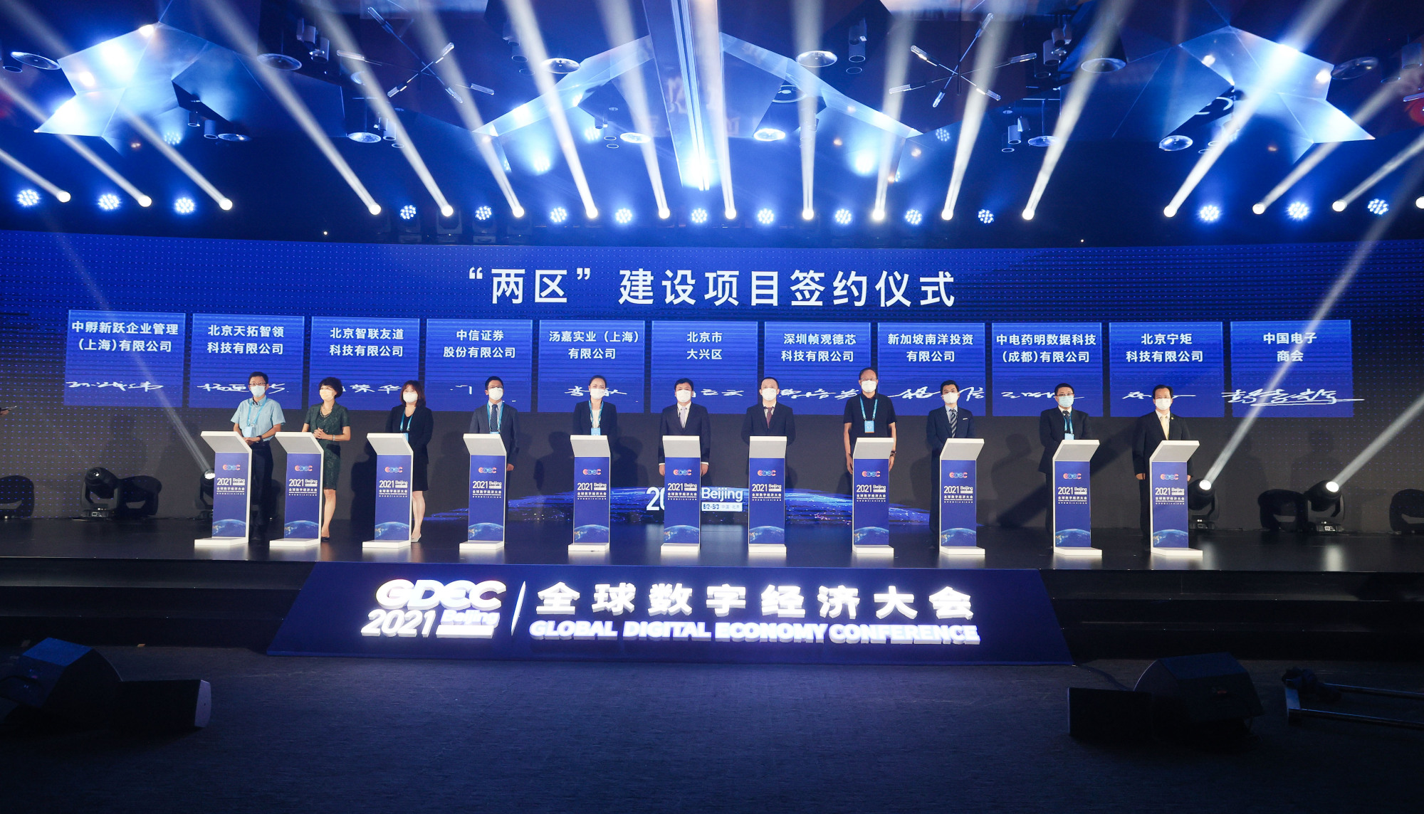 大兴区委书记周立云与帧观德芯、汤嘉实业等10家数字经济代表企业签约。其中,创新大赛冠军得主帧观德芯赛后直接签约落地,中电药明、宁矩科技等一批具有发展潜力的项目也将落地发展。