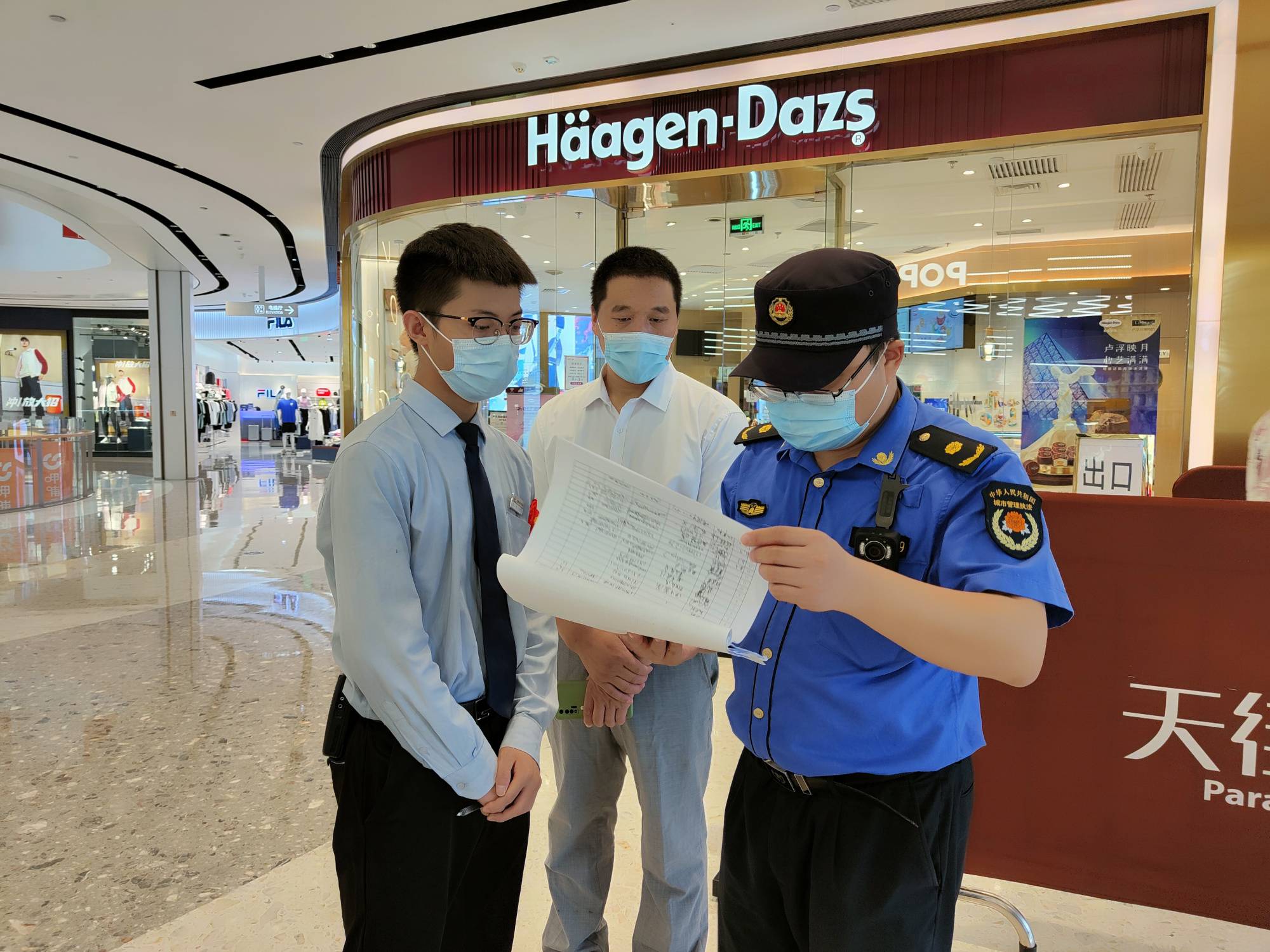 随后,执法人员还对附近的餐饮单位和写字楼进行检查,重点查看进出人员佩戴口罩、楼内通风消毒等防疫措施落实情况,并要求物业单位继续加强对入驻企业的管理,每日进行自查自纠,确保疫情防控工作落实到位。