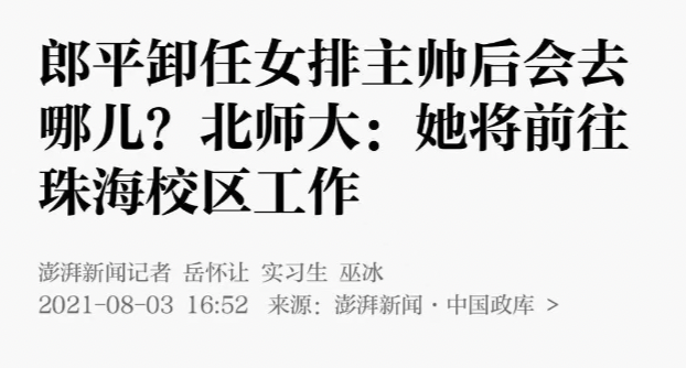北师大回应:郎平确实将来珠海校区工作
