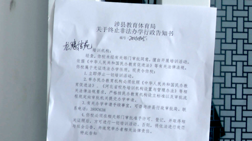 按照涉县疫情防控要求,自8月1日起,涉县合法校外培训机构均已关停,但因部分家长疫情防控意识淡漠,监管责任疏忽,不顾孩子的身体健康和生命安全,把孩子送到无证无照的黑机构,严重影响了涉县的疫情防控秩序。