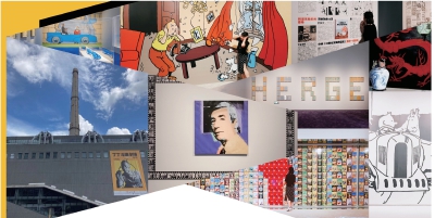 相较于系列连环画《丁丁历险记》以及作品中比利时记者丁丁的形象在世界各地家喻户晓,人们对“丁丁之父”埃尔热(Hergé)或许不甚了解。这次展览在开篇的两个展厅就聚焦于"丁丁之父"埃尔热的艺术人生。一整面墙上用若干幅手稿拼成的HERGE字样,也是对这位艺术家的致敬。
