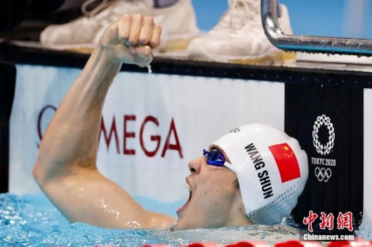 7月30日,东京奥运会男子200米混合泳决赛中,中国选手汪顺夺得冠军。中新社记者 富田 摄