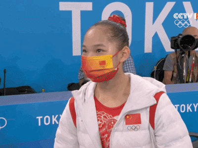 拿下平衡木银牌的唐茜靖完成比赛后,